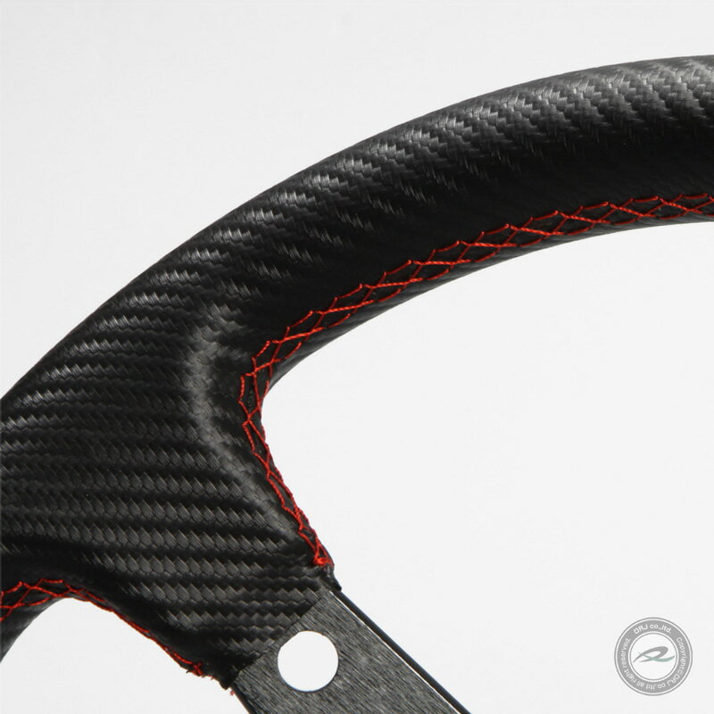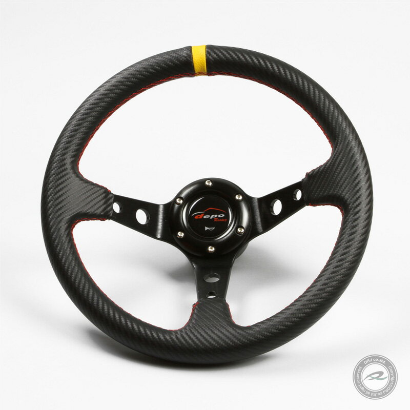 デポレーシング ステアリング ハンドル 32φ ディープコーン 70mm カーボン柄 PVC 赤色クロスステッチ イエロートップ 赤ステッチハンドル イエロートップ ディープコーンステアリング deporacing 送料無料「D32C」