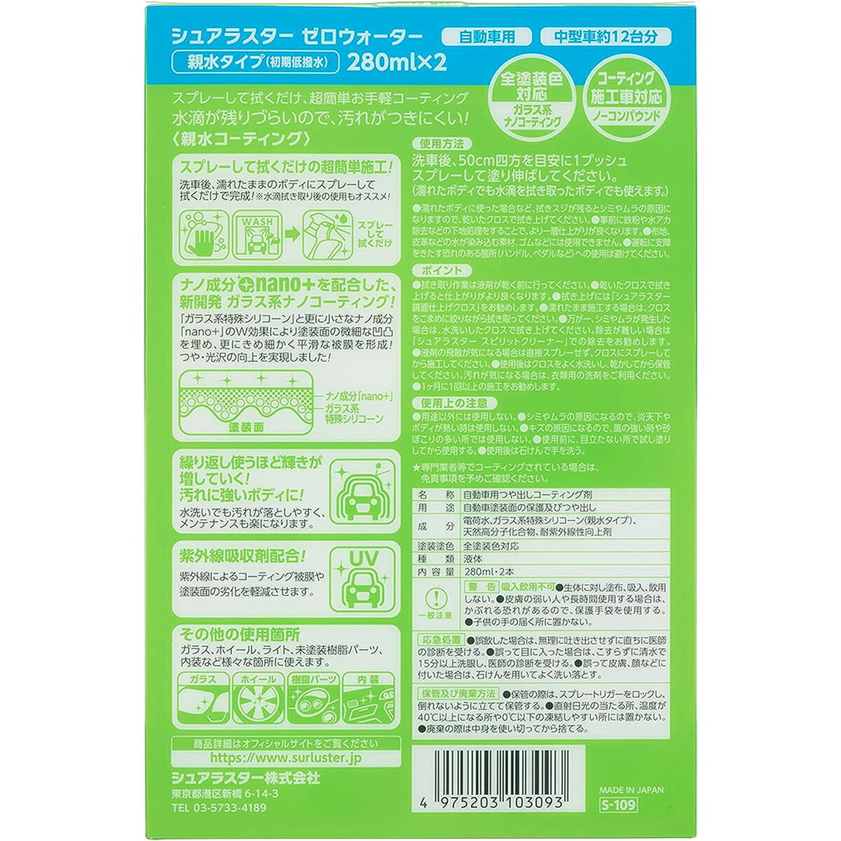 SurLuster シュアラスター S-109 Zero Water ゼロウォーター 280ml 2本 親水コーティング バリューパック 中型車約12台分 2か月耐久