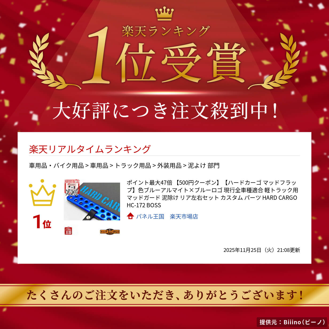 【500円クーポン】【ハードカーゴ マッドフラップ】色ブルーアルマイト×ブルーロゴ 現行全車種適合 軽トラック用 マッドガード 泥除け リア左右セット カスタム パーツ HARD CARGO HC-172 BOSS