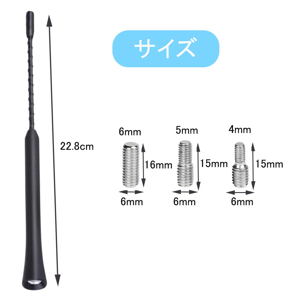 【送料無料】LIKENNY カーラジオアンテナ 自動車アンテナ ルーフアンテナ ラジオアンテナ AM/FM ショートアンテナ (ブラック/汎用)全長9インチ 三つサイズのネジ付き