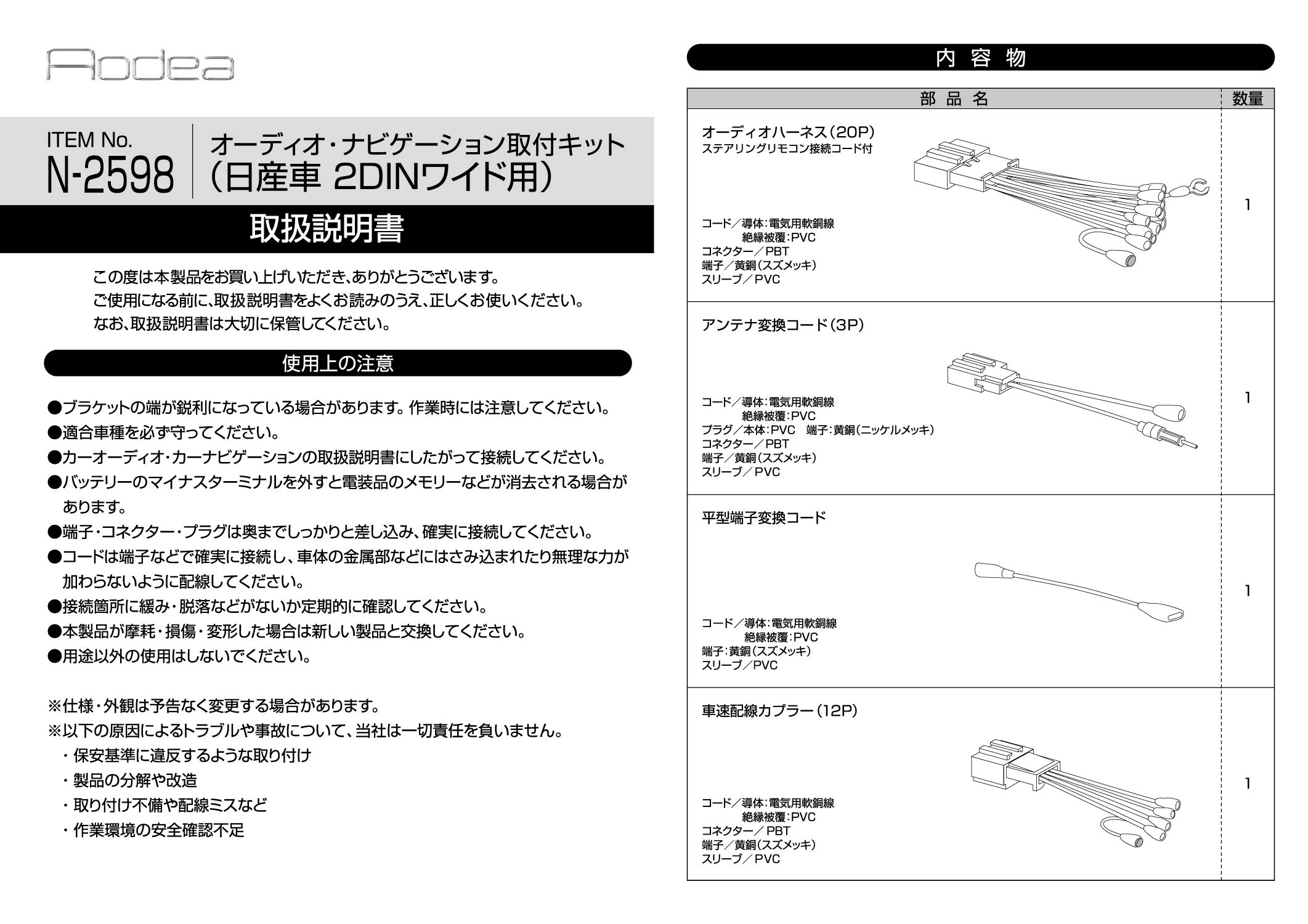 【送料無料】エーモン(amon) AODEA(オーディア)オーディオ・ナビゲーション取付キット 日産車・2DINワイド用 N-2598
