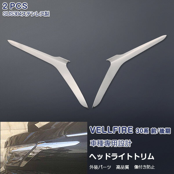 ヴェルファイア 30系 前/後期 ヘッドランプカバー ガーニッシュ ヘッドライトトリム メッキモール ステンレス 鏡面仕上げ ドレスアップ カスタムパーツ 外装 アクセサリー 2PCS 3602