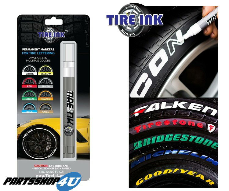 ●TIRE INK タイヤインク ●タイヤレタリングマーカー ●カラー(全8カラー) レッド/ブルー/グリーン/イエロー/オレンジ/シルバー/ゴールド/ホワイト 適合:二輪/四輪/自転車のタイヤ/その他ゴム素材 容量 6ml 耐久時間:正しい施工で約1年 ※耐久時間は目安となりますので確実を保証するものではございません タイヤ接地面への使用は危険ですので絶対に行わないで下さい。 沖縄・離島は別途申...
