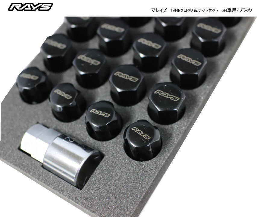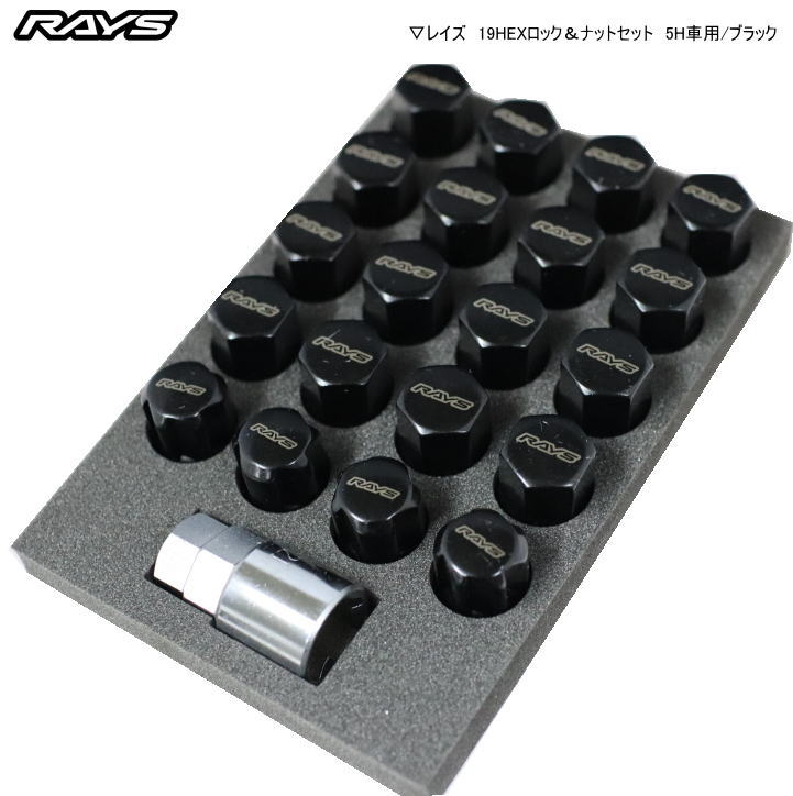 【正規品】レイズ RAYS ホイールナット ロックナット 19HEX ロック&ナットセット 5H車用 ブラック