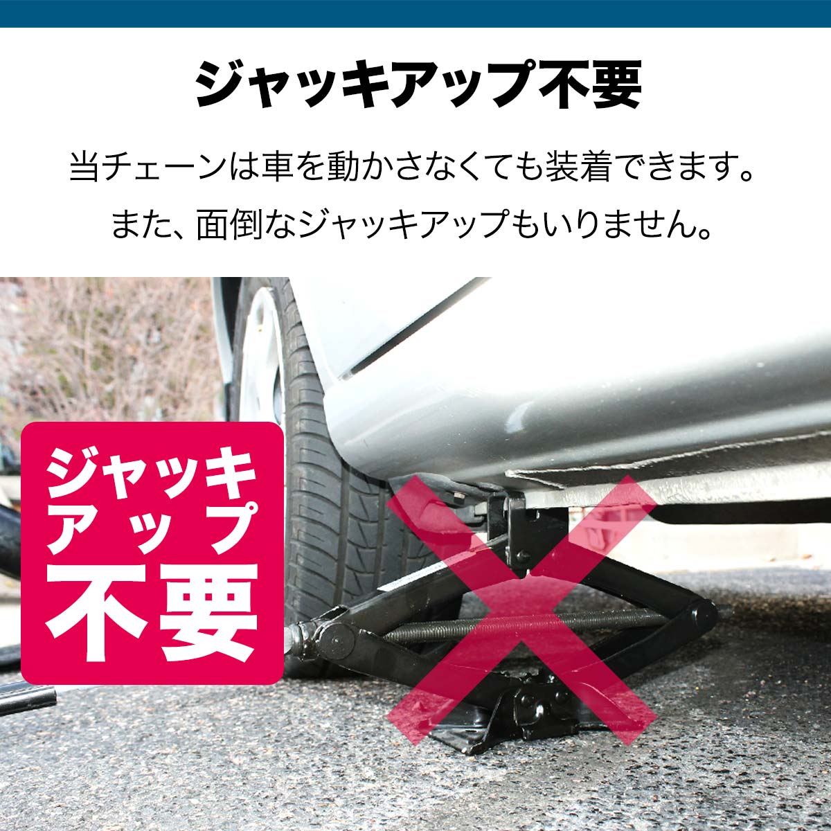 ジャッキ不要の簡単着脱!横滑りに強く静寂性に優れた亀甲型の12mm金属製チェーン。専用ケース・作業用手袋付き 雪道 滑り止め トランクに雪走行注意・チェーン着用規制の非常用として。